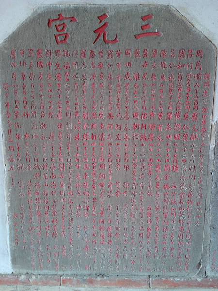 湖口三元宮主祀三官大帝,本件碑記係日據大正十二年(西元一九二三年)該宮重修紀事,詳列捐款信徒的姓名與金額,以垂久遠。