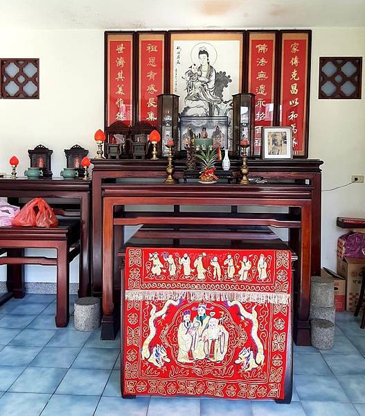 因為在一部份公廳陳設已經掛起閩南化的「佛祖漆仔」,但公媽龕下方仍保留有土地龍神,禾埕也有天公爐,該戶主人仍然會說流利客家話的客家夥房裡,發現主人在「佛祖漆仔」的下方邊緣,貼著用紅紙寫有兩至三位不等的神明稱號,卻並無香爐的情形,據主人告知,他的上述作法就是在「拜神明」,此與公廳燈樑高掛「三官大帝」燈籠,當作拜三界爺有異曲同工的涵義。