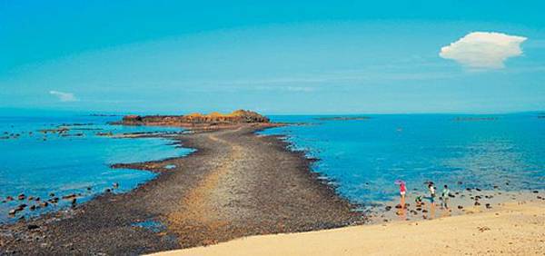 漲潮時,毫無異狀,退潮後,澎湖縣湖西鄉奎壁山與一水之隔的赤嶼變得精采萬分,原來海水退潮後,兩地之間會露出一條卵石與沙子組成的礫石步道,日出時,金黃色帶狀步道從海底浮現,把大海一分為二,被網友譽為台版「摩西奇蹟」,每年吸引許多遊客到訪