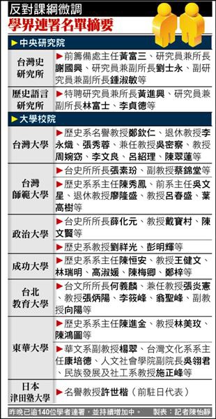 反對課綱微調 學界連署名單摘要