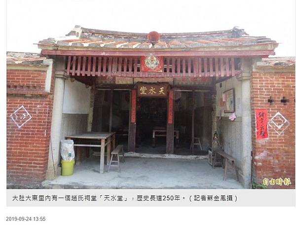 大肚大東里內有一個趙氏祠堂「天水堂」,歷史長達250年。(記者蘇金鳳攝)