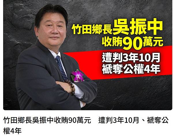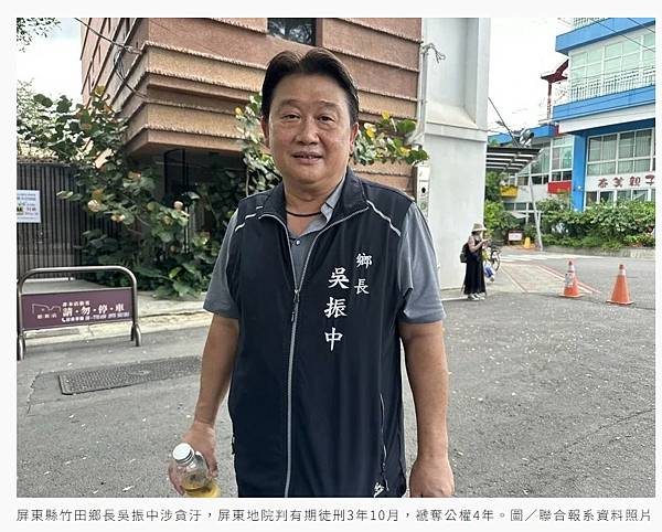 竹田鄉長吳振中收賄90萬元 遭判3年10月、褫奪公權4年 - 客新聞 HakkaNews https://bit.ly/4oHO84w