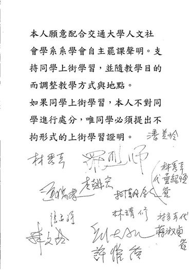 1. 我們支持學生自主罷課,或經師生協商後調整課程。
