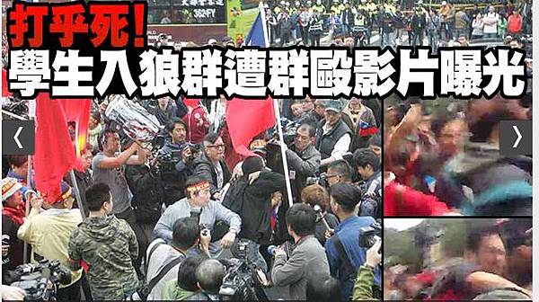 今日下午白狼張安樂帶人到立法院外頭,揚言要搶回議場,結果周圍發生了群眾攻擊事件,一名男學生不知道為什麼,突然被攻擊,大家還喊著「打乎死」,場面一度緊張。