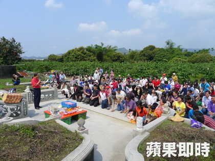 掃墓儀式昨日9時展開,200多名親族陸續到達祖墓,持香祭拜,行三跪九叩大禮,追思先祖阿太公江如南,儀式約1個小時結束。祭祀後,江家子弟排隊領取紅龜粿,再齊聚江家古厝公廳分享潤餅,交流情感。