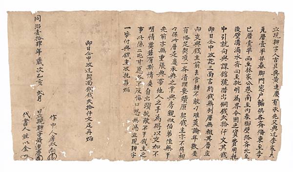 同治壹拾肆年歲次乙亥弍月 日立現耕字黃連慶 作中人族叔向 代書人莊以金