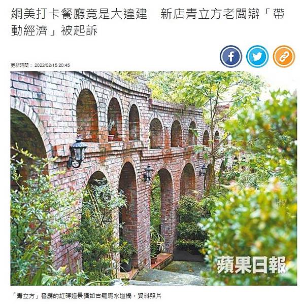 網美打卡餐廳竟是大違建 新店青立方老闆辯「帶動經濟」被起訴 | 蘋果新聞網 | 蘋果日報
