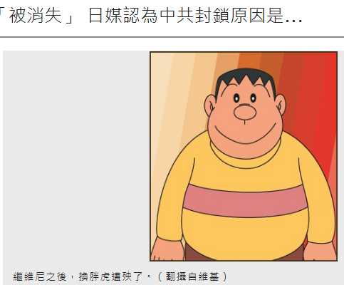 胖虎也「被消失」 日媒認為中共封鎖原因是...