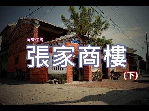 張家商樓創建於1910年代,是佳冬唯一雙層的傳統紅磚樓房,位在清朝時期最繁榮商街交易地帶的冬根路與西邊路口,它曾是水產、甘蔗交易的販賣空間,也是居民生活必需品採買的雜貨店,民國57年張家擁有全村第一台電視機後,每到傍晚張宅門外還擠滿了來看楊麗花歌仔戲的村民,是極具代表性的臨街常民文化建築。