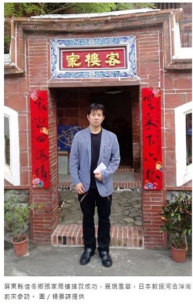 屏東縣佳冬鄉張家商樓搶救成功,展現風華,日本教授河合洋尚前來參訪。 圖/楊景謀提...