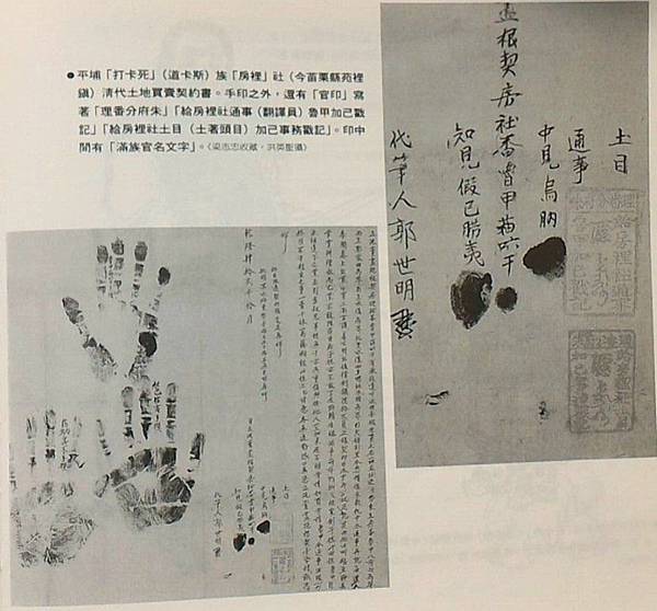 不是只有大目降族人會使用掌印簽契約,苗栗苑裡道卡斯也有用掌紋簽名