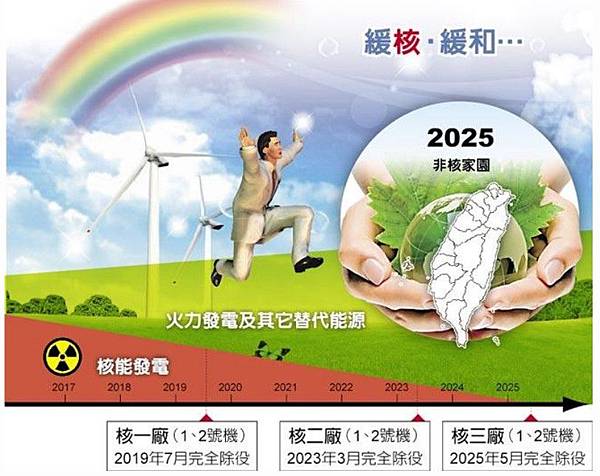 台灣將正式邁入「非核家園」的時代,過程中謝謝許多先進與公民團體的努力,而政府當前最重要的工作,就是持續穩定供電、開發多元綠能。