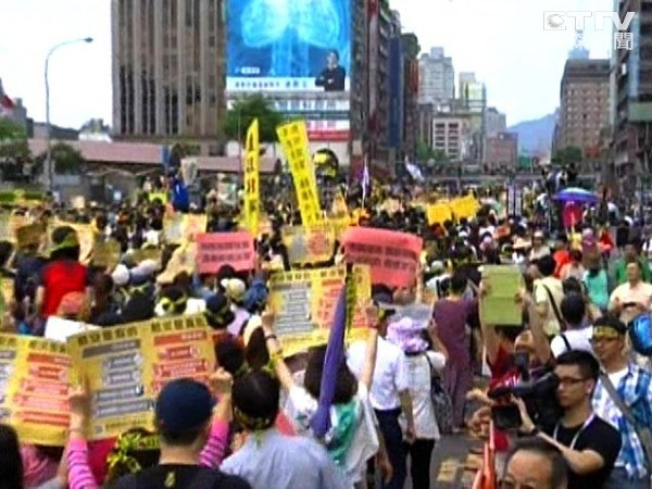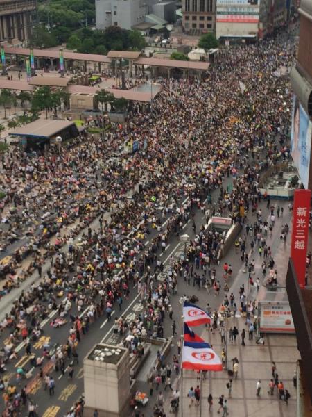 民眾除了佔領忠孝西路雙向全線車道、台北車站前廣唱外,忠孝東西路和中山南北路口也有千人在上面靜坐,還在中山北路電線桿上拉上封鎖線,行經車輛都只能倒車繞道。