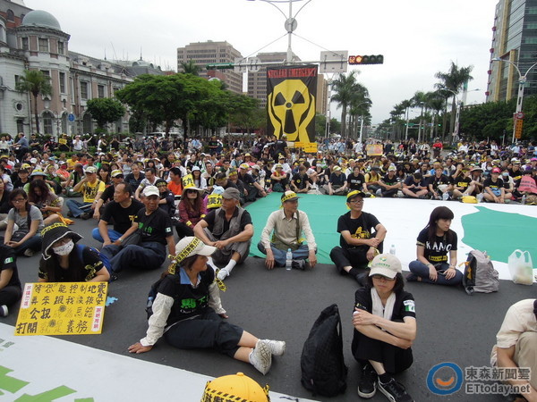 由「全國廢核行動平台」發起的反核四活動今(26)日下午在凱道展開,晚上的「全民守護廢核決心」靜坐活動也將持續徹夜靜坐。 圖1/3:劉奕霆/攝