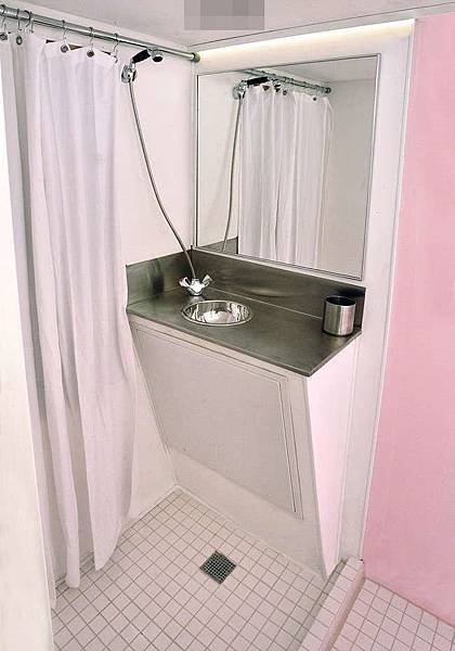浴室雖然很小但是設備應有盡有,簡單的白色配色,讓盥洗環境看起來更舒適。