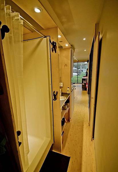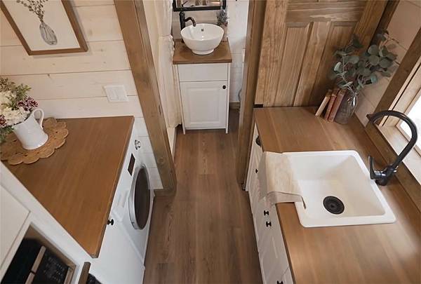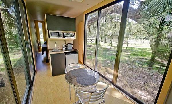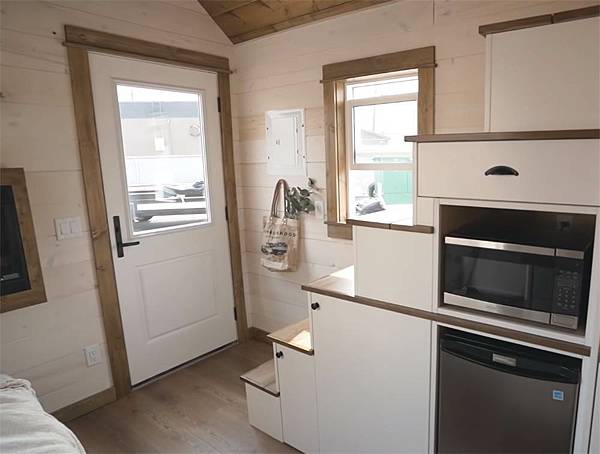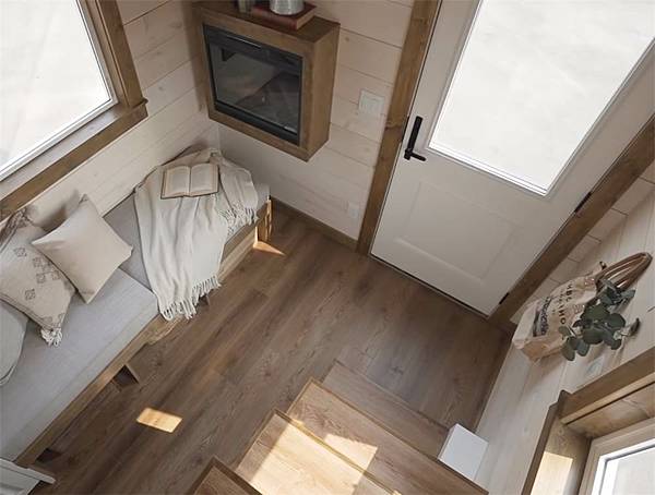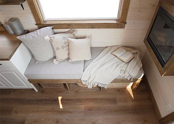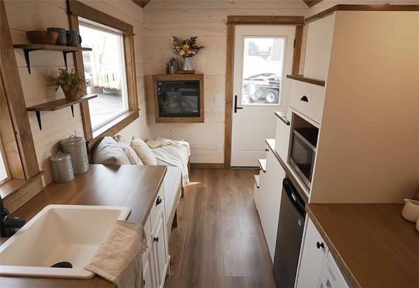 甚至還有地面暖爐,讓你在冬天也可以保持舒適的居住環境。室內裝潢也相當簡約時尚,空間並不像外面看起來如此的小。