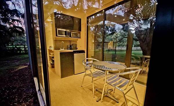 因為室內空間的有限,所以還利用許多儲物櫃與折疊式的桌椅省空間,看起來也相當清爽。