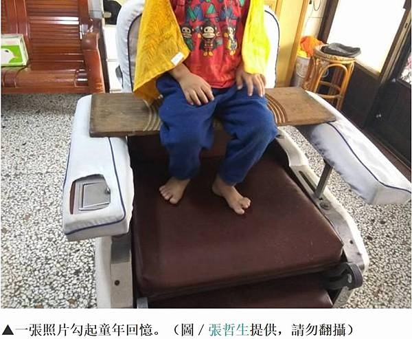 還記得這樣的情景嗎,小時候如果要去剪頭髮,理髮院常常會把把木板或洗衣板「饋」在扶手上,讓身高不夠的小孩坐著剪髮,現今逐漸換成板凳,或是可以調整高度的坐椅,已經相當少見。文史工作者張哲生就在臉書粉絲專頁分享了這樣的一張照片,意外引起許多網友附和「以前也坐過」。