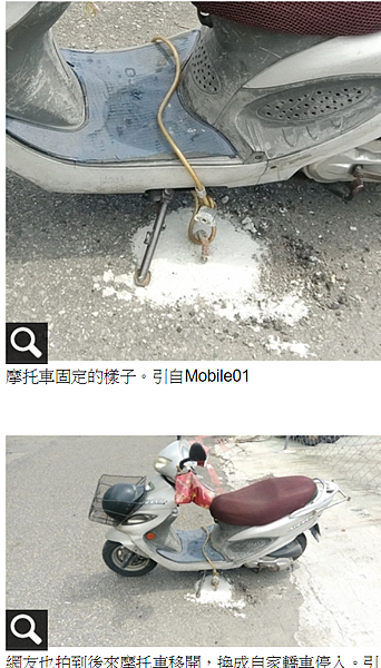 〔記者蔡孟尚/竹東報導〕新竹縣竹東鎮惠昌街大同國小旁路段,被人發現有機車長期停放路旁,有幾輛的車輪還用鐵鍊、鐵絲和水溝蓋綁在一起,有人把照片PO上臉書社團後,部分網友質疑這是佔車位的路霸。
