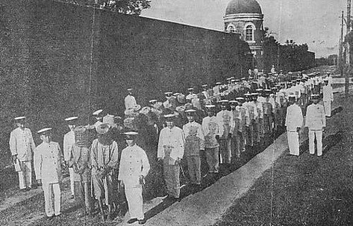 1915年,領導西來庵抗日事件之余清芳,被日軍逮捕上腳鏈後拍下此囚徒照片,隨後送往遊街示眾至刑場處決。