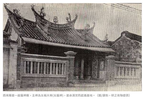 西來庵是一座瘟神廟,主神為五福大帝(五瘟神),是余清芳的起義基地。(圖/康豹,研之有物提供)