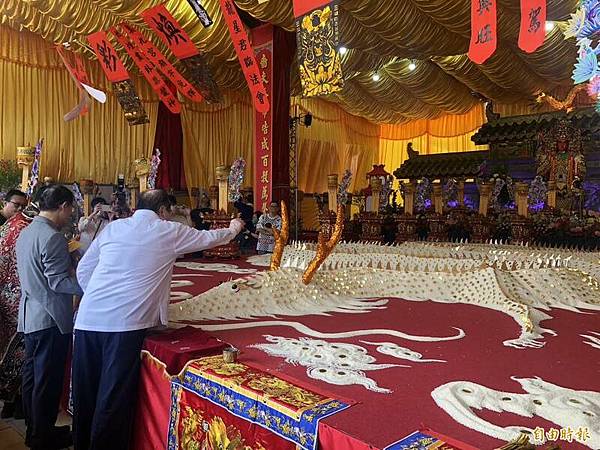 李乾龍表示,米除了是國人主食,還蘊含「九宮八卦」格局,具有驅邪攘災功用,今年特地將法師加持過的米及紅、黃、綠、黑四豆打造五色米龍,象徵五行龍神歸位,為信眾祈福,米龍身上的鱗片也可帶在身上招貴人,或放在家中當錢母,聚財保平安。