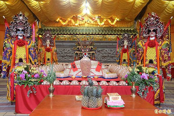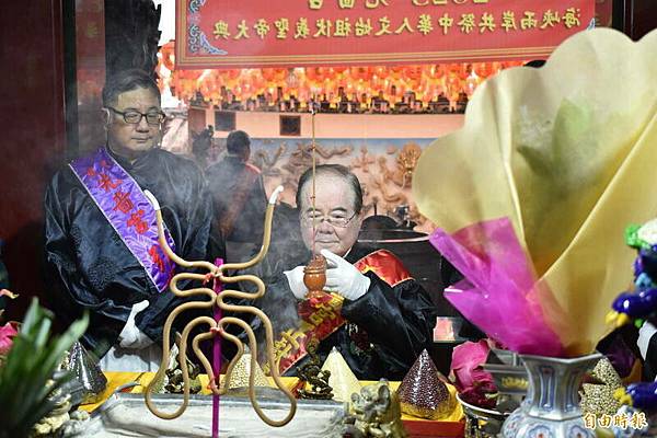 「海峽兩岸共祭中華人文始祖伏羲典禮」今天在中國甘肅天水、新北市三重先嗇宮兩地舉行。(記者闕敬倫攝)