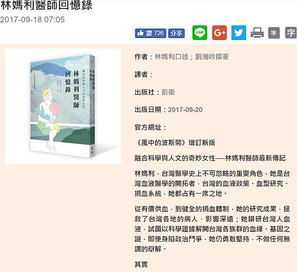 融合科學與人文的奇妙女性──林媽利醫師最新傳記