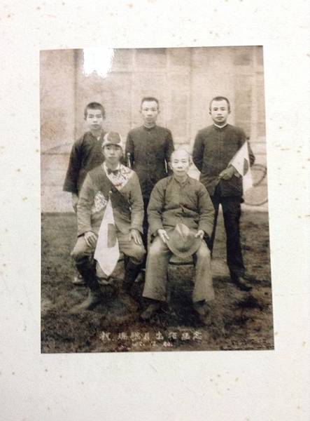 北埔鄧騰釬(左二,攝影師鄧南光的二哥)被徵召出征時,日本友人特地為他舉辦壯行會。