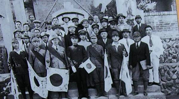 1938年北埔姜家子弟從軍:姜瑞昌+姜煥蔚+姜重垣+姜阿新+鄧騰肝+姜瑞鵬+莊阿魁。送軍親友團:鄧騰駿、姜瑞鵬、姜瑞金、姜瑞昌、鄧瑞坤