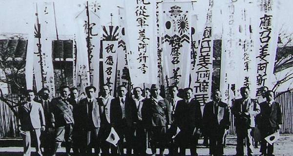 昭和19年(1944年)我父親收到紅色的[徵兵令](紅單仔)。在雄壯威武的軍歌中,及家人親朋好友'地方士紳'在校學生'人手一面太陽旗揮舞下,身披彩帶的父親光榮的奉召出征。