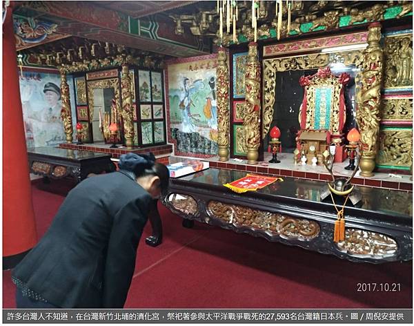 許多台灣人不知道,在台灣新竹北埔的濟化宮,祭祀著參與太平洋戰爭戰死的27,593名台灣籍日本兵。自1982年戒嚴時期,從靖國神社分靈回台祭祀,迄今已有35個年頭,孤伶伶的35寒暑,中華民國政府視之為「敵軍」而未曾聞問。深深期盼蔡總統能夠說到做到,挹注更多的人力與經費,關注這段台灣人真實卻被刻意隱沒的歷史,讓這些曾為土地付出生命的台灣人不再當孤魂飄泊。