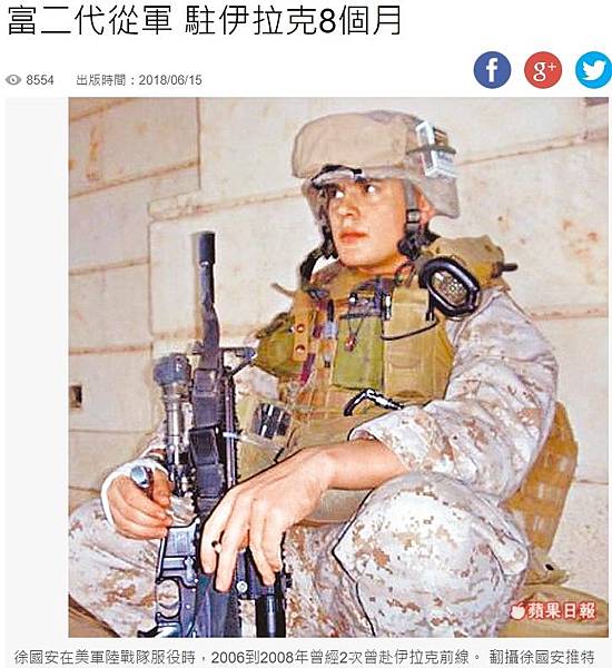 【財經中心╱台北報導】徐國安出身豪門,從小生活優渥,念的是名校,不過他有段不尋常的經歷,曾經從軍進入美國海軍陸戰隊擔任軍官,還親赴伊拉克戰場,國內富二代中,徐國安應該是唯一曾經上過戰場打仗的,成為徐國安日後接掌市值6000億元遠東集團的本錢。