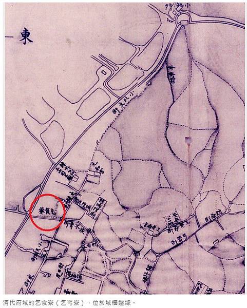 清代府城的乞食寮(乞丐寮),位於城牆邊緣。