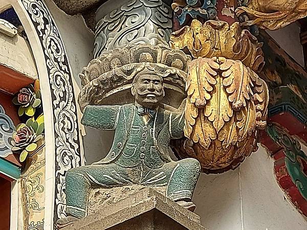 三峽祖師廟也有憨番扛廟角,雕刻有兩個來源一是以前的人討厭荷蘭人,二是洋人漢草好力大無窮