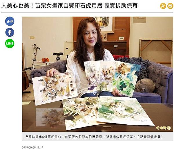 分享人美心也美!苗栗女畫家自費印石虎月曆 義賣捐助保育到Facebook分享人美心也美!苗栗女畫家自費印石虎月曆 義賣捐助保育
