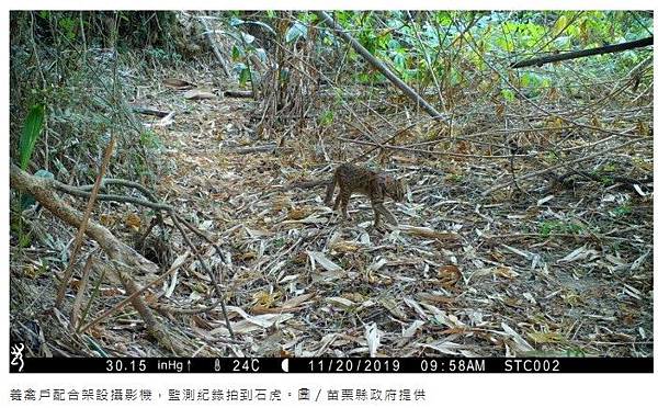 研究團隊10月3日在芬園鄉文德國小附近架設紅外線自動相機,11月22日前往收集資料,發現其中1台拍攝到1隻年輕的石虎,出現的時間為10月10日凌晨3時29分,也確認八卦山脈有石虎族群分布,讓研究人員超興奮,未來也將持續進行系統性的調查工作。
