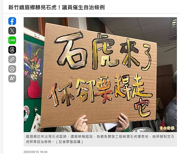 新竹峨眉鄉赫見石虎!議員催生自治條例 - 生活 - 自由時報電子報