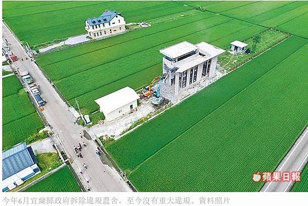 今年6月宜蘭縣政府拆除違規農舍,至今沒有重大違規。資料照片