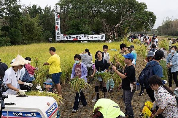 新竹縣竹北市台知園區計畫(璞玉計畫)歷經多年抗爭又將捲土重啟,由於此地不但有435公頃良田,更屢次孕育出十大經典好米,反對開發的民眾在8月16日組成《救璞玉公民行動》聯盟,並號召百人播下青綠的秧苗,今天(22日)正好是百人插秧後的第100天,行動聯盟邀請了百位民眾一同拿起鐮刀收割黃金稻穗,現場也用冠軍米手作客家飯糰,讓民眾感受這塊良田的美好,也希望政府重視公民的訴求、否決台知計畫,一起保留這片美麗田地。