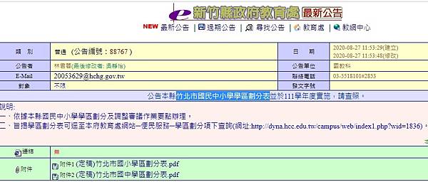 新竹縣政府教育處回應,縣政府針對竹北巿各校學區重新劃分依據「就近入學」、「單一學區」、「各校校舍可容納量體」、「各鄰里未來5年設籍新生數」等4大原則進行規劃,已經召開2場次諮詢會議邀請里長、學校提供意見進行草案微調,也將邀請議員、巿民代表提供諮詢建議,在廣納各界意見後預計19日公告學區劃分草案,並於教育處網頁設置專區公告相關資訊,另預計於6月30日及7月1日晚上於體育場大型會議室召開2場次説明會,歡迎關心這個議題的民眾來參加表達意見,教育處彙整各方意見後將於7月初召開學區劃分及調整審議委員會進行學區調整審議事宜,預計7月底前公告各校學區劃分,並於111學年度實施。