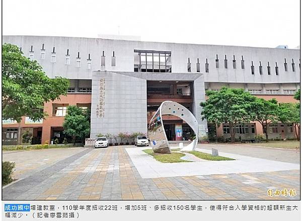 成功國中98年起招生,10年來學校周邊社區人口成長快速。校方表示,106學年須輔導轉介的學生有155人,但從報到至開學前替補,實際轉介110人左右。