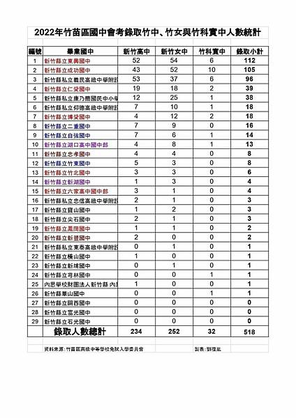 總之依照網路上的資料只能整理出竹北的國中錄取狀況,給大家參考參考囉
