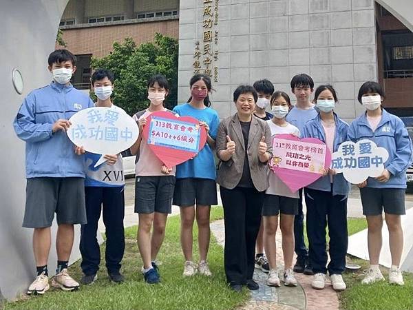 成功國中此屆國中會考計有23人拿下5A10+、30分的滿分,其中有4人寫作也拿下滿級分,分別為音樂班的游雅淇、李佳頤、古翊樺以及姜馨。
