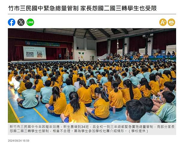 竹市三民國中緊急總量管制 家長怨國二國三轉學生也受限 - 生活 - 自由時報電子報