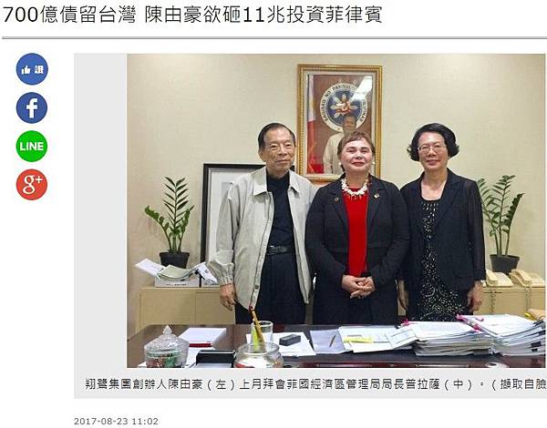 700億債留台灣 陳由豪欲砸11兆投資菲律賓 - 國際 - 自由時報電子報 - https://goo.gl/qnHYZ6