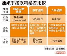 【黃馨儀╱台北報導】台灣搖搖杯名氣愈來愈夯,業者估手搖飲料市場1年就有千億商機!也讓許多國際級連鎖茶飲企業近年來都傳出IPO(Initial Public Offering,首度公開發行)計劃。在中國深耕10多年的台資企業雅茗天地集團計劃年底前申請第一上櫃;而在全球有上千家門市的CoCo都可,更積極評估回台掛牌可能性。