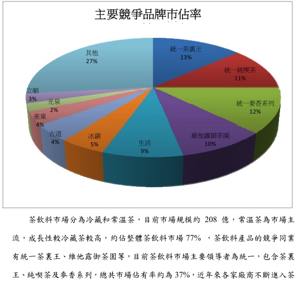 炎炎夏日,冰涼飲料是大家消暑的好朋友,除了東方快線之前分享的手搖飲料店茶飲市場外,台灣的包裝茶飲也是玲瑯滿目。且隨著近年來夏日氣溫不斷攀高,台灣茶飲料的內銷值也逐漸攀升,就經濟部統計處統計資料顯示:2010年台灣茶類飲料內銷值為17388328(千元);2011年為18166644(千元);2012年為19654153(千元)。表示台灣消費者對於茶類飲料的消費逐年升高。