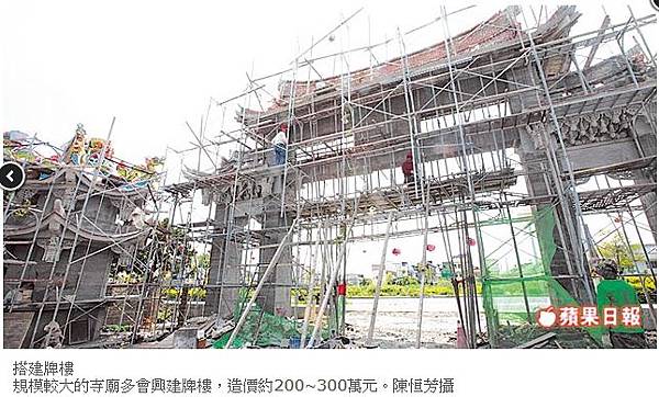 規模較大的寺廟多會興建牌樓,造價約200∼300萬元。陳恒芳攝