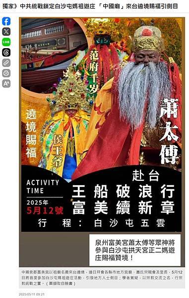 中國廟宇要來台參拜,地方宮廟通常不會拒絕,但中國共產黨是無神論,宗教交流是帶有政治目的或議程,例如這次來台遶境,改天也會邀台灣宮廟到中國交流,把台灣信眾拉過去統戰。政府單位應對這種以「宗教交流」包裝的統戰活動,以及背後可能的獻金有所規範。 https://bit.ly/4m5v0gd